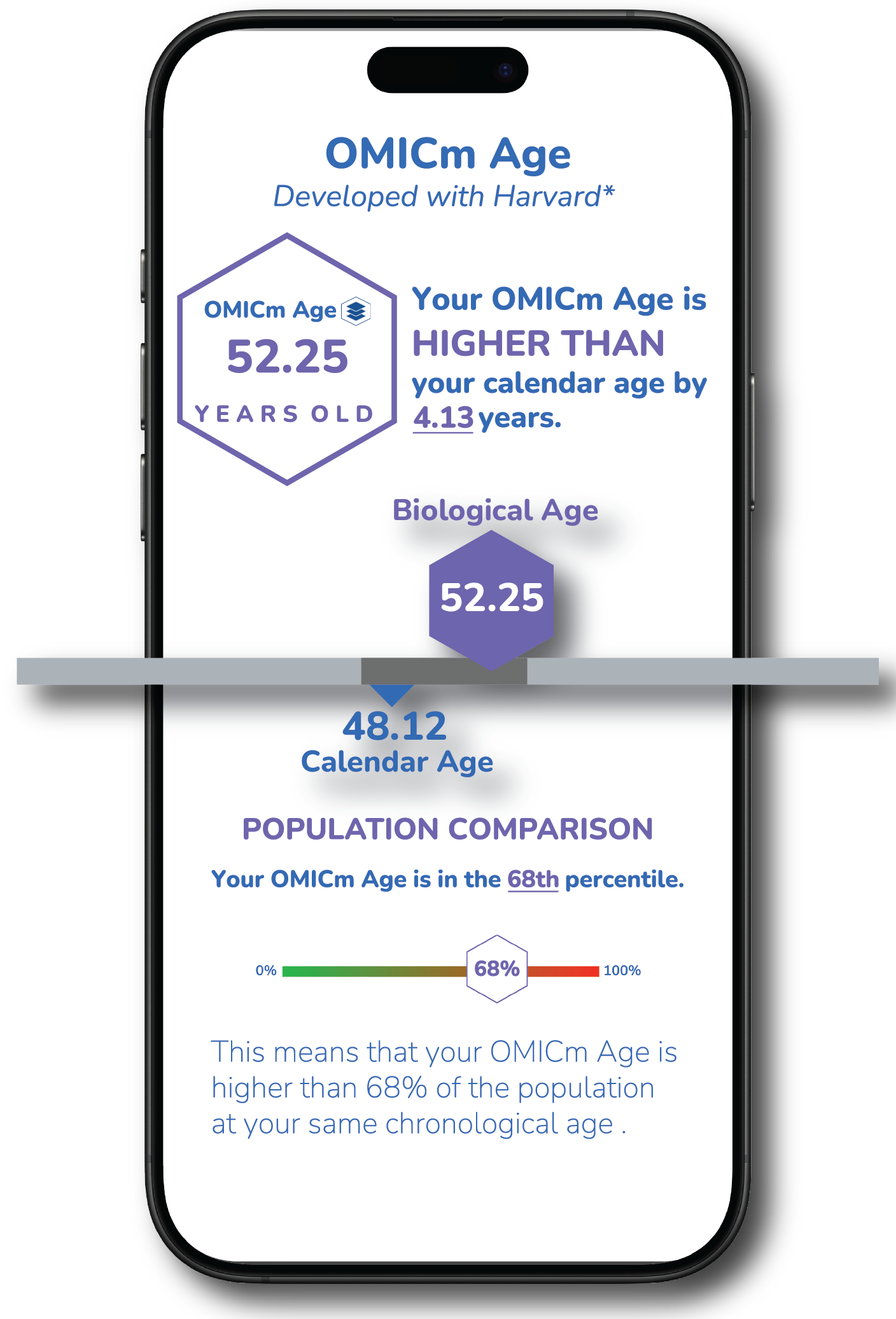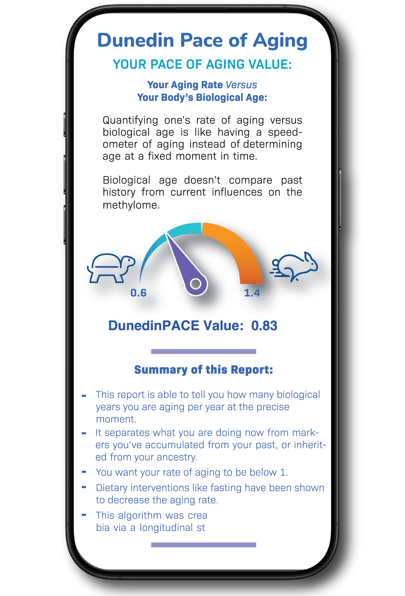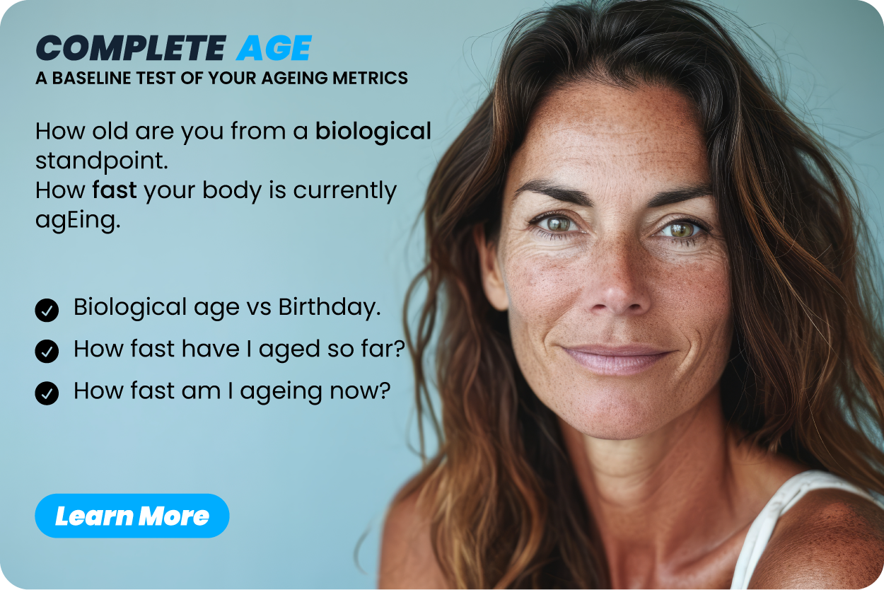 COMPLETE AGE tells you how old you really are from a biological* standpoint, and analyzes how fast or slow your body is currently aging on a cellular level.