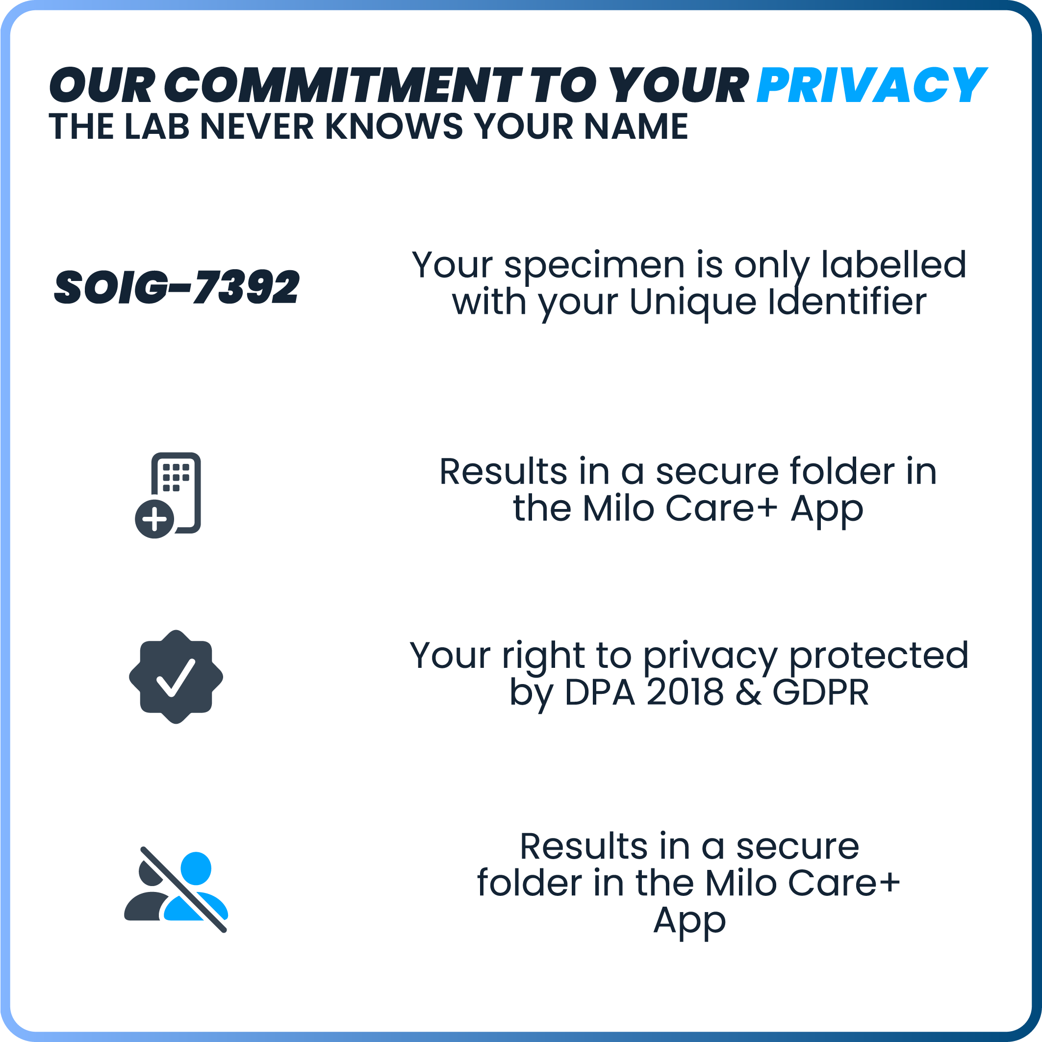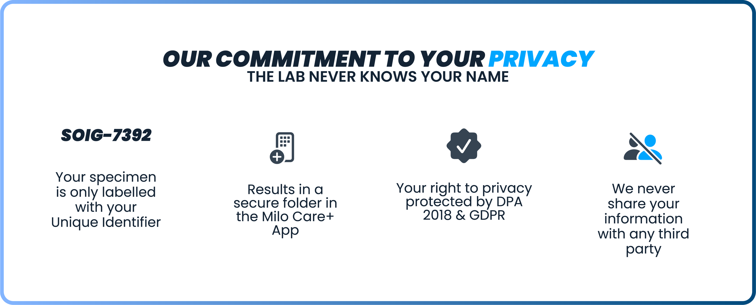 In about 3 weeks your results will be available exclusively on the Milo Care Plus app.