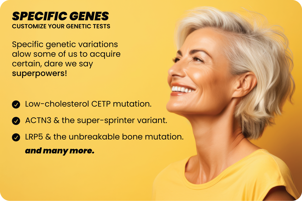 and many more like MTHFR, BRCA1/BRCA2, APOE, and beyond.