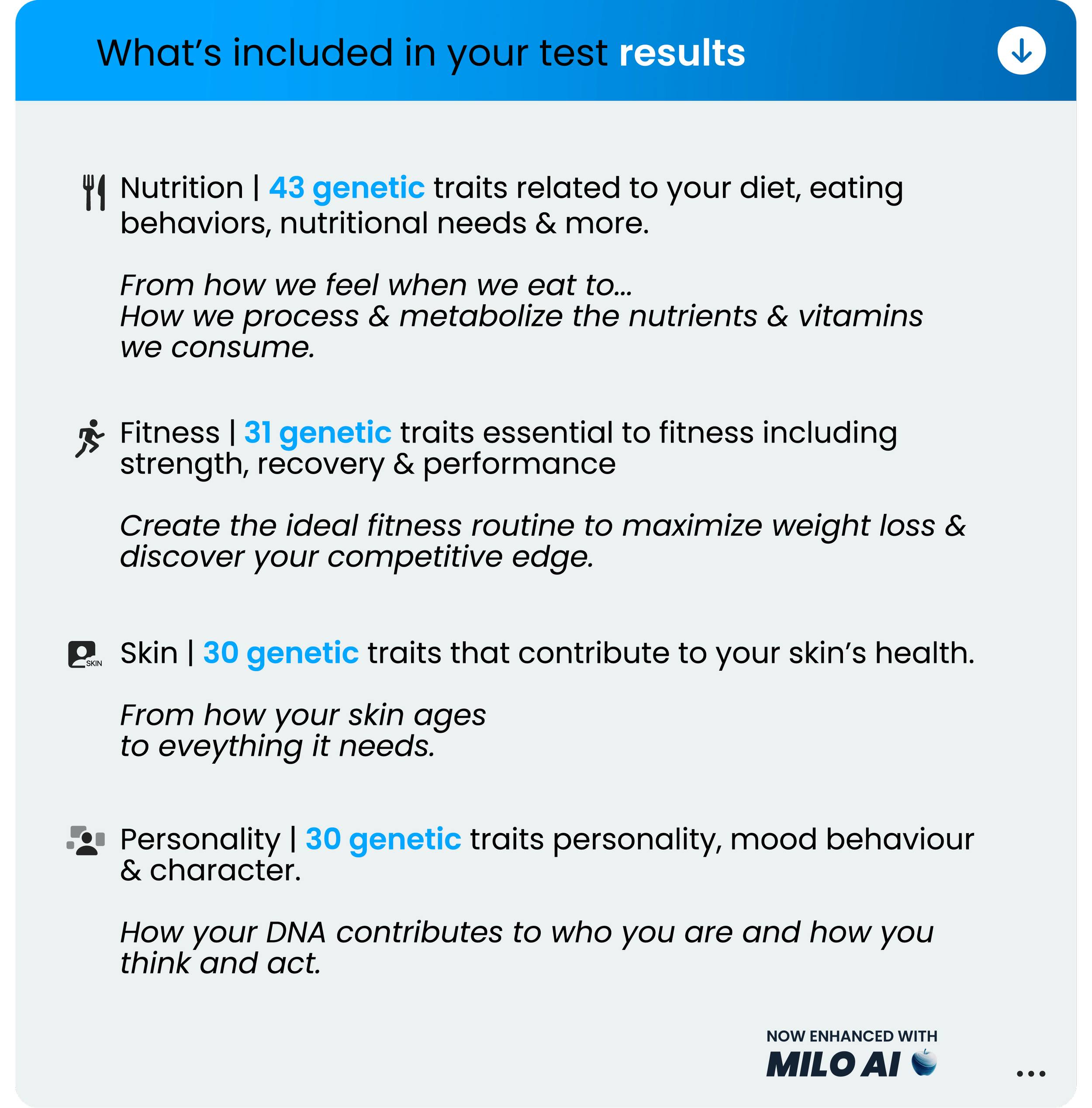 In about 3 weeks your results will be available exclusively on the Milo Care Plus app.
